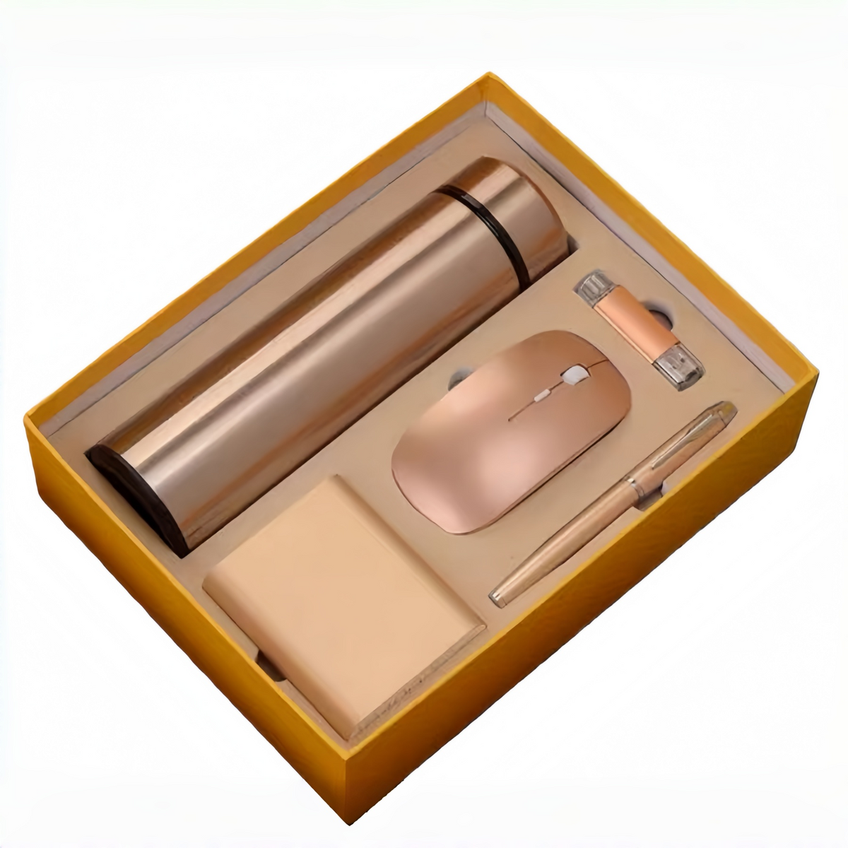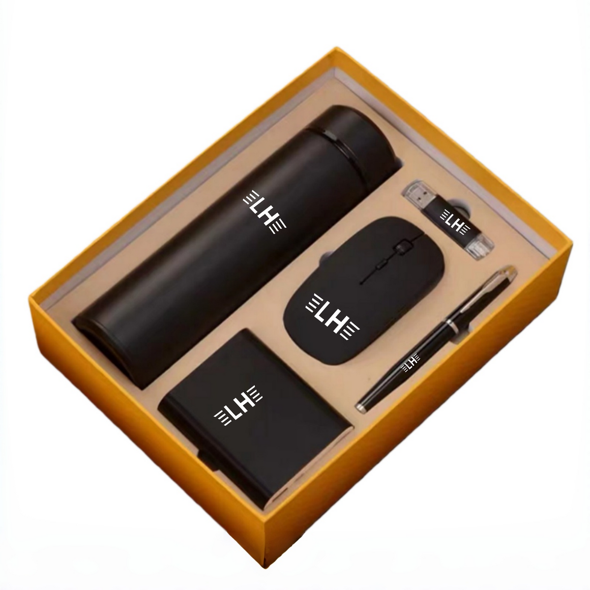You will receive 1 welcome to the team gift for new employees, including 1 power bank, 1 pen, 1 USB drive,1mouse and 1 insulated water bottle, as well as 1 gift box and 1 gift bag with the logo or words you want, a good welcome gift set for new employees.