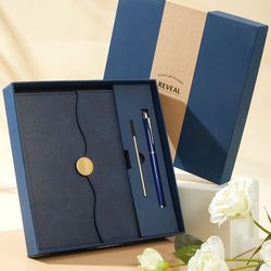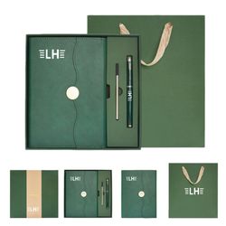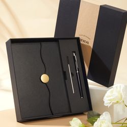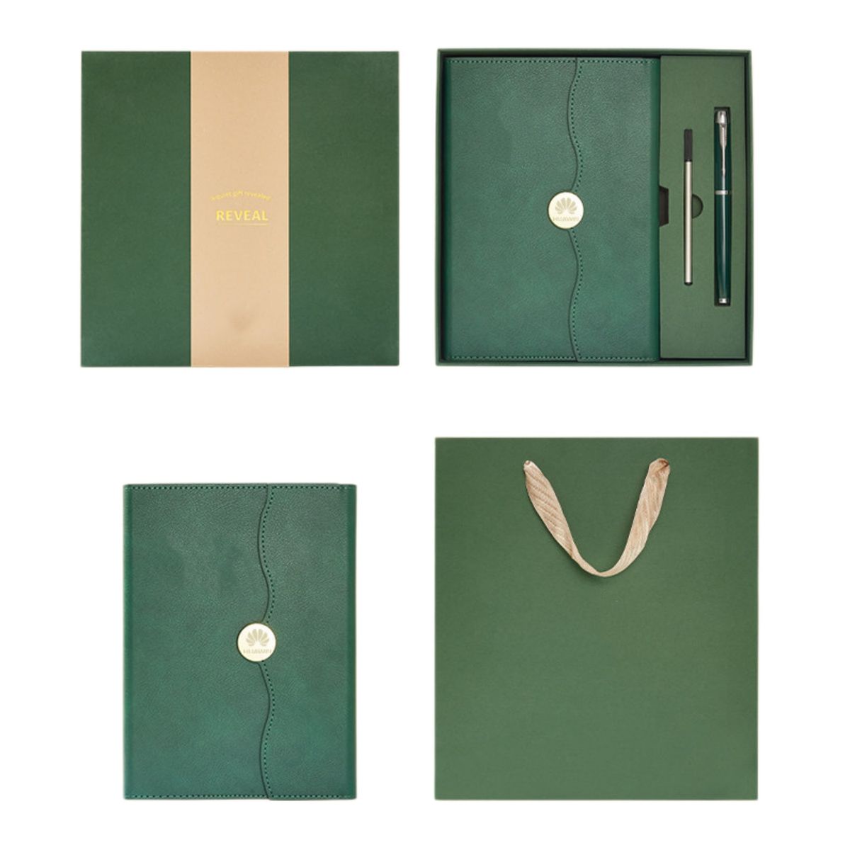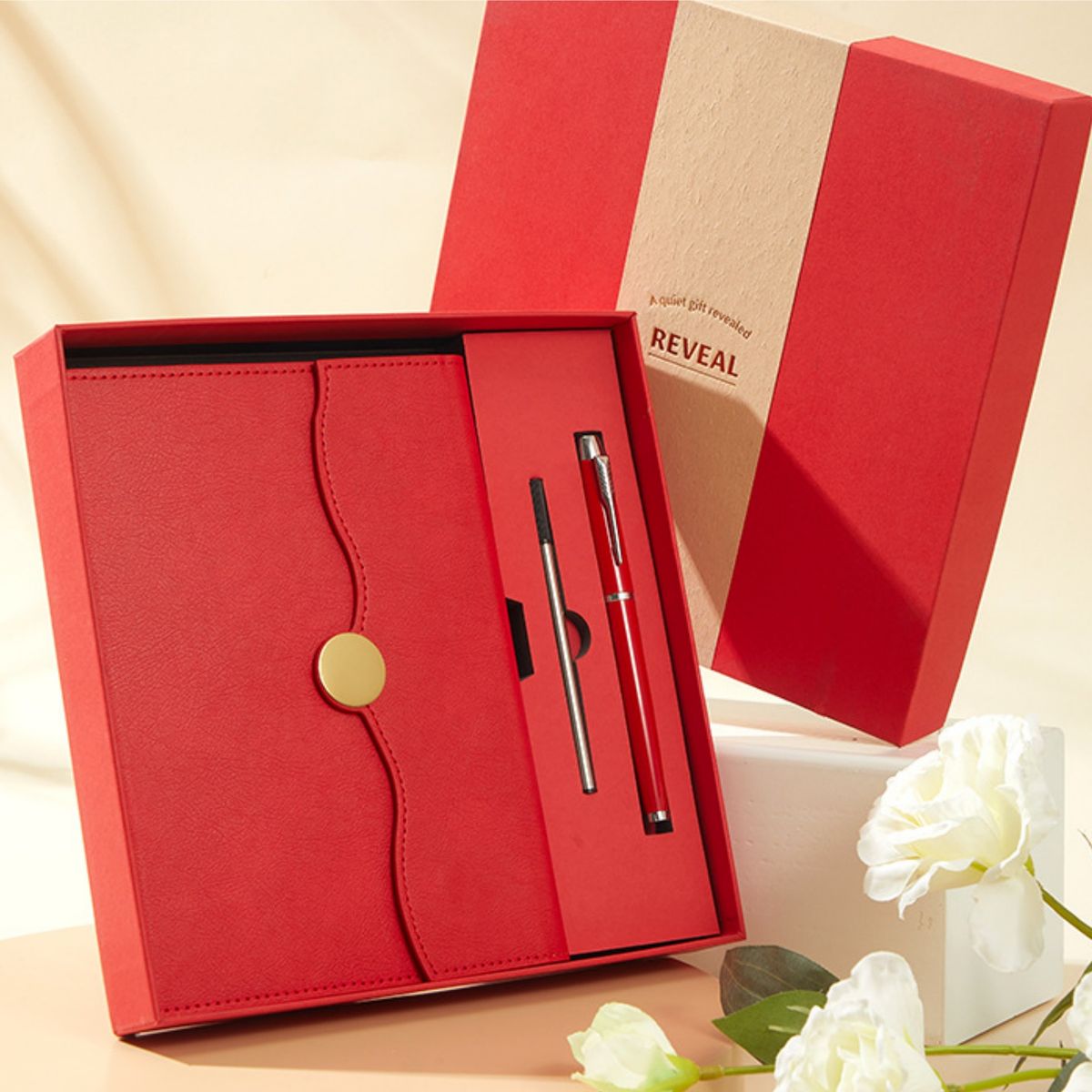This promotional gift set includes a notebook, a matching ballpoint pen, a pen refill, a matching gift box, and a matching gift bag. Its unique feature is the loose-leaf design, allowing for easy access and movement of the notebook pages. Furthermore, the notebook uses a magnetic closure for quick and easy opening and closing. Once closed, the notebook stays intact, and the corners remain neat and tidy. This stylish notebook gift set is an ideal choice for holiday gifts and business souvenirs.